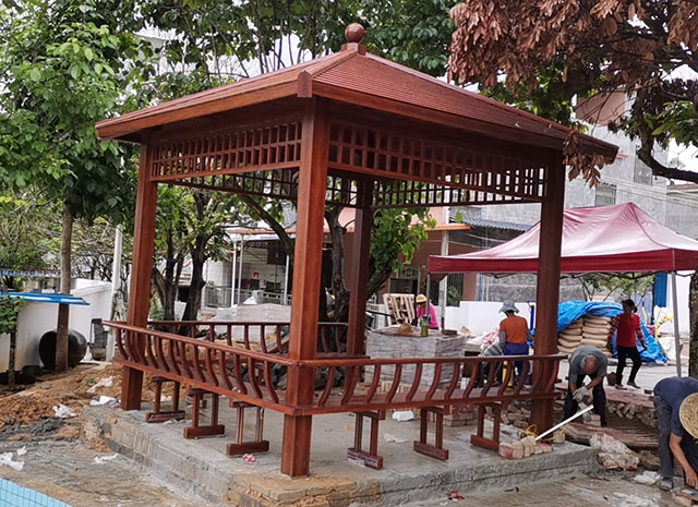 近些年來,鋁制涼亭受到了很多人的青睞,因?yàn)殇X制涼亭材質(zhì)硬不易老化,后期基本不用維護(hù),其外觀經(jīng)過木紋處理轉(zhuǎn)印后,質(zhì)地顏色都和木頭很相似,從遠(yuǎn)處更是看不出來區(qū)別,經(jīng)風(fēng)摧日曬也不易掉色、老化、干裂,而這些在木制涼亭中都無法避免。而且鋁制涼亭建造后牢固性也很好!