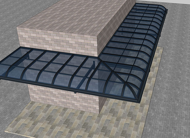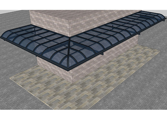 頂棚采用進(jìn)口聚碳酸酯板,抗沖擊是玻璃的數(shù)百倍,有效防止高空墜物