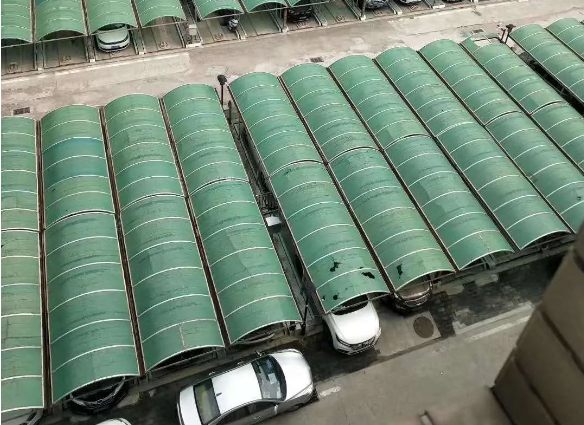 原始的塑料板綠棚,遮陽(yáng)擋雨的功能有如茅草屋,老化破損厲害,高空墜物很容易穿透棚頂,傷到車身。尤其是,不抗風(fēng)!關(guān)鍵是,幾乎還不隔熱,三伏天車子停在下面打開(kāi)依然像蒸籠。