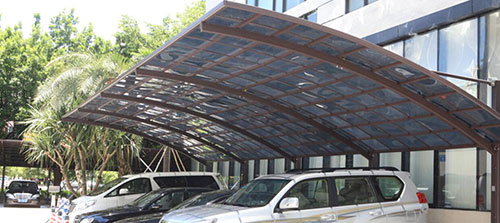 類別:車棚1.透光性——透光性能好(透光率88%),在陽光下暴曬不會產(chǎn)生黃變,霧化、透光不佳;