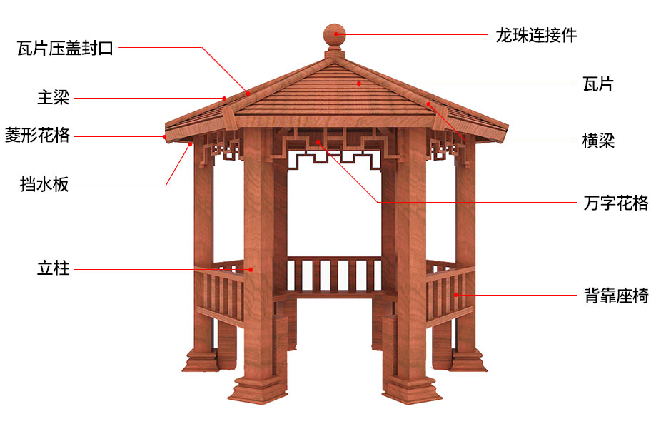 涼亭,傳統(tǒng)結(jié)構(gòu)單體建筑之一。因?yàn)樵煨洼p巧,選材不拘,布設(shè)靈活而被廣泛應(yīng)用在園林建筑之中。是人們憑借一定材料建造出來的,而材料的特性,也必然會(huì)對(duì)建筑的造型風(fēng)格產(chǎn)生影響。所以,涼亭的造型藝術(shù),也在一定程度上取決于所選用的材料。由于各種材料性能的差異,因此,不同材料建造的涼亭,就各自帶有非常顯著的不同特色。