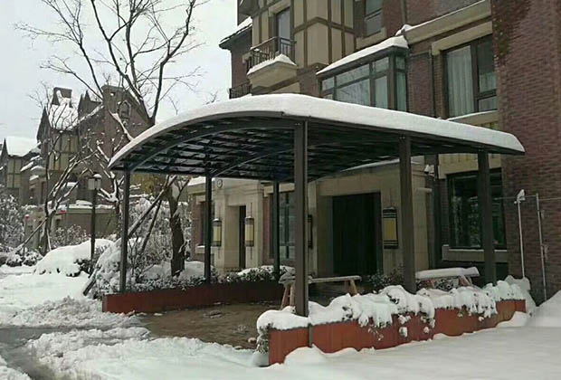 頂棚采用進(jìn)口聚碳酸酯板,抗沖擊是玻璃的數(shù)百倍,有效防止高空墜物