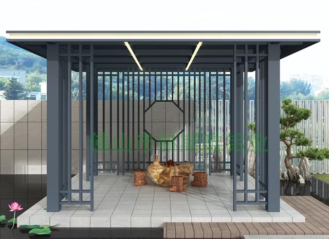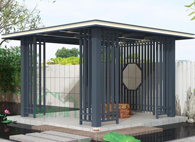 6、新中式鋁合涼亭防火阻燃,徹底解決木質(zhì)類(lèi)產(chǎn)品容易燃燒,存在安全隱患的難題。