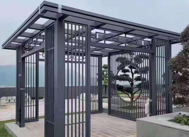 4、新中式鋁合涼亭安全牢固。高強度鈦鋁合金材質(zhì),可抵抗各種外力沖擊,不斷裂、不坍塌、不傾倒,安全性能高!