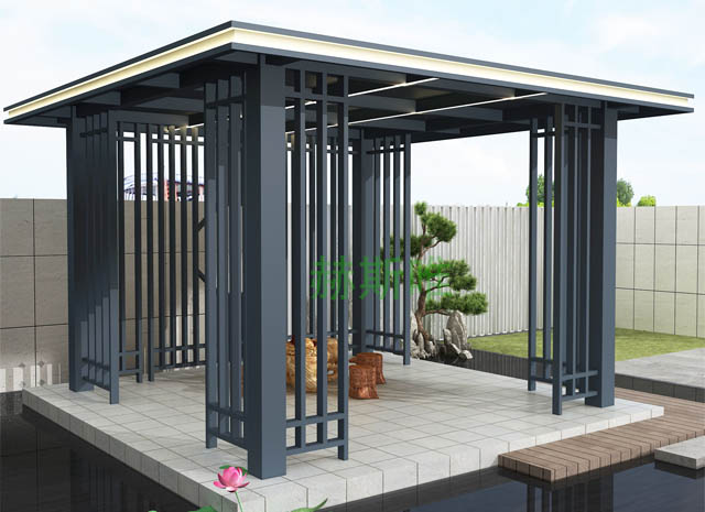 6、新中式鋁合涼亭防火阻燃,徹底解決木質(zhì)類產(chǎn)品容易燃燒,存在安全隱患的難題。