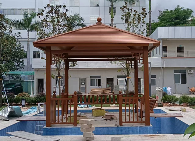 近些年來(lái),鋁制涼亭受到了很多人的青睞,因?yàn)殇X制涼亭材質(zhì)硬不易老化,后期基本不用維護(hù),其外觀經(jīng)過(guò)木紋處理轉(zhuǎn)印后,質(zhì)地顏色都和木頭很相似,從遠(yuǎn)處更是看不出來(lái)區(qū)別,經(jīng)風(fēng)摧日曬也不易掉色、老化、干裂,而這些在木制涼亭中都無(wú)法避免。而且鋁制涼亭建造后牢固性也很好!