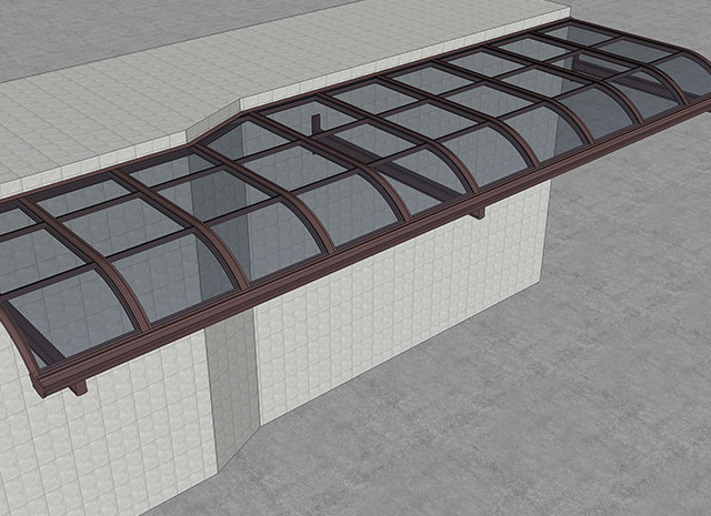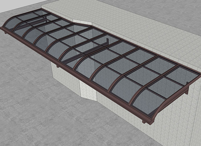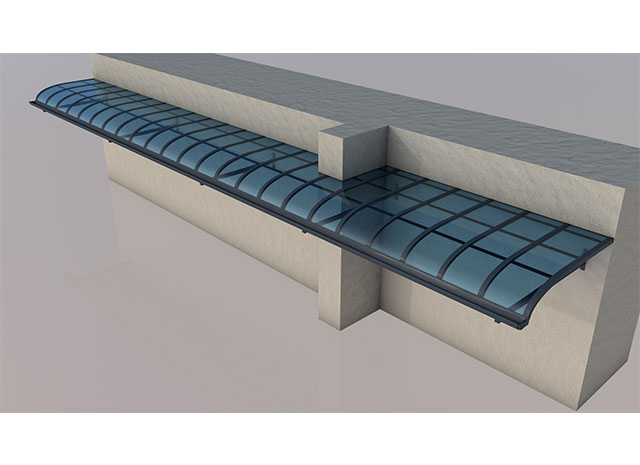 頂棚采用進(jìn)口聚碳酸酯板,抗沖擊是玻璃的數(shù)百倍,有效防止高空墜物