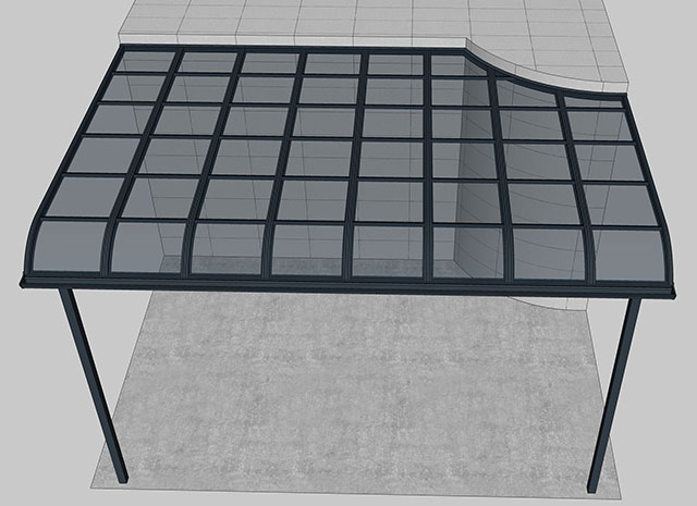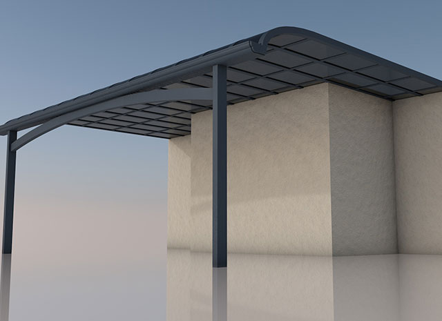 頂棚采用進(jìn)口聚碳酸酯板,抗沖擊是玻璃的數(shù)百倍,有效防止高空墜物