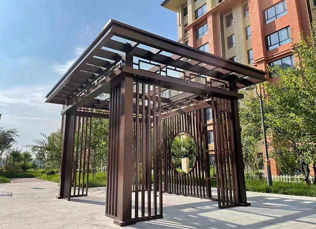 7、新中式鋁合涼亭顏色豐富,可供選擇的顏色眾多。既具有天然木質(zhì)感和木質(zhì)紋理,又可以根據(jù)自己的個(gè)性來定制需要的顏色。