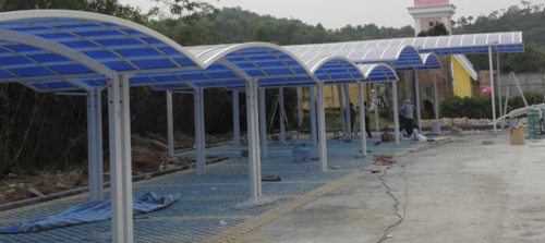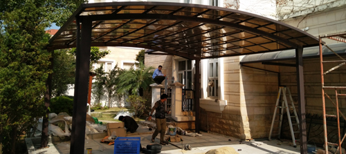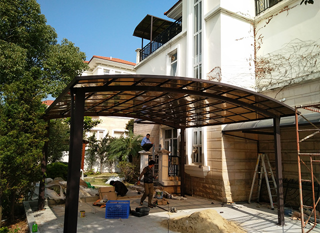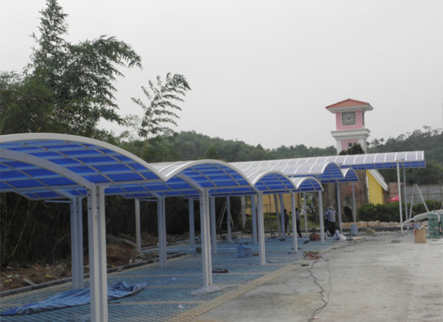 頂棚采用進(jìn)口聚碳酸酯板,抗沖擊是玻璃的數(shù)百倍,有效防止高空墜物