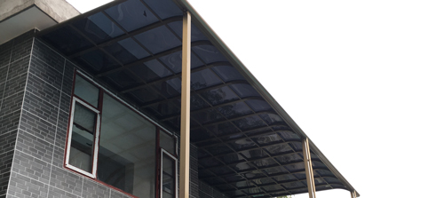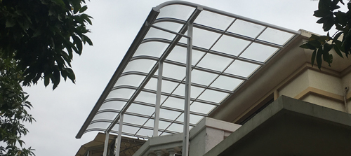 頂棚采用進口聚碳酸酯板,抗沖擊是玻璃的數(shù)百倍,有效防止高空墜物